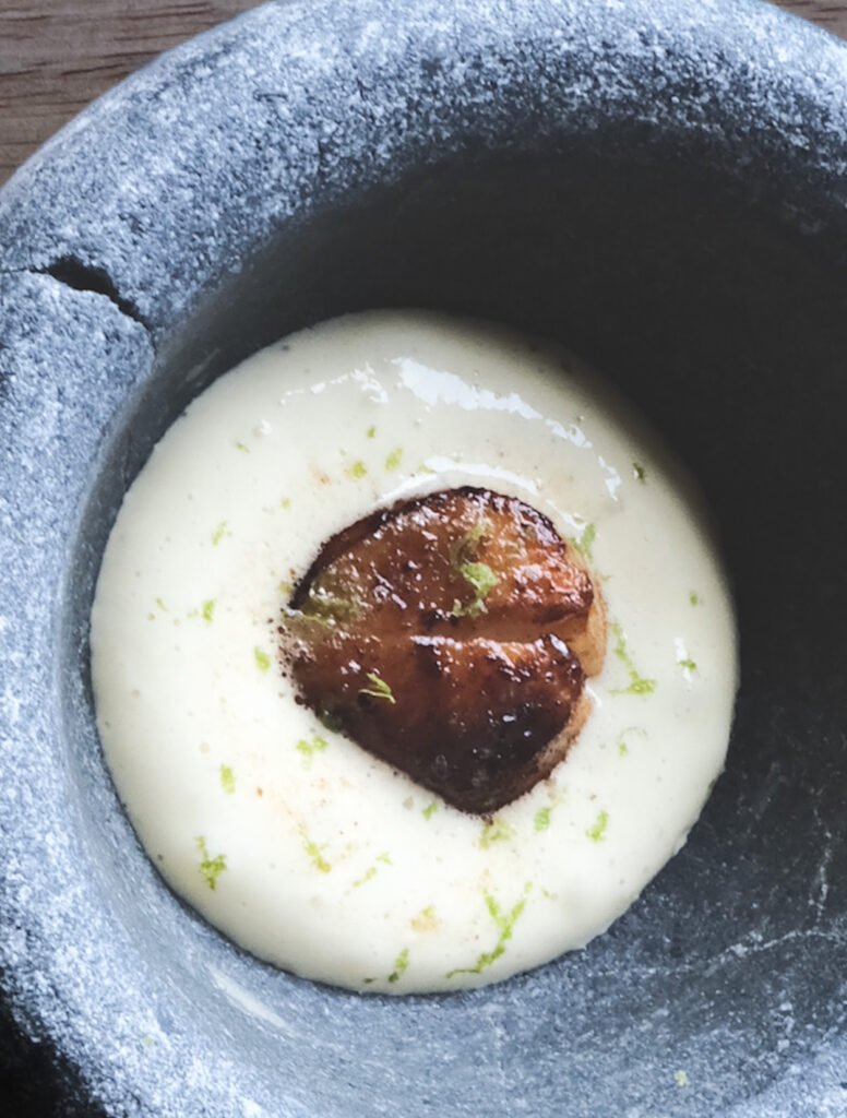 I took advantage of a great supply of extra special, plump Isle of Mull scallops and rustled up a smoked beef fat hollandaise, finished with fresh bergamot. Reminds me of Christmas Day breakfasts. It’s an outrageously good small plate this week and somehow feels like a perfect fit for this time of year.