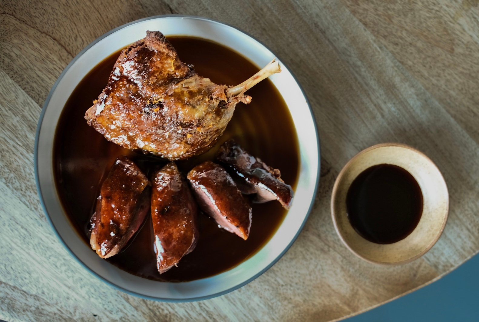 We’re giving our salt aged Yorkshire ducks some more love this week. As a special, there’s a half bird glazed in burnt honey, mandarin and soy. The leg is confit’d in duck fat with anise, mandarin peel and black pepper; the breast is pan roasted, brushed with the same glaze and finished with a touch of smoked salt. It comes with a rich duck sauce and a dipping mandarin hoisin.