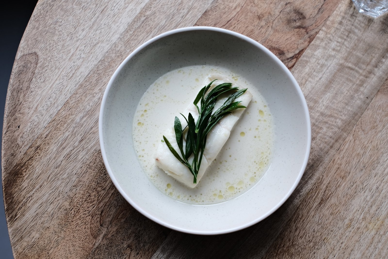 Our wild Hebridean halibut is here and it’s as beautiful and delicious as we hoped – creamy, delicate and I think, a little sweet. I’m serving it with smoked confit garlic sauce and some zesty, foraged rock samphire. You’ll find it on both the main menu and the set menu this week.